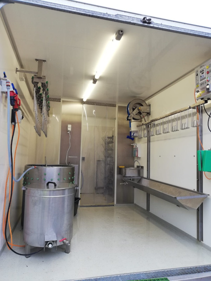 Ausgestattet mit allem, was für eine professionelle Schlachtung notwendig ist.